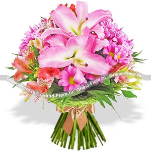 Чарующее лето - букет из лилии и альстромерии